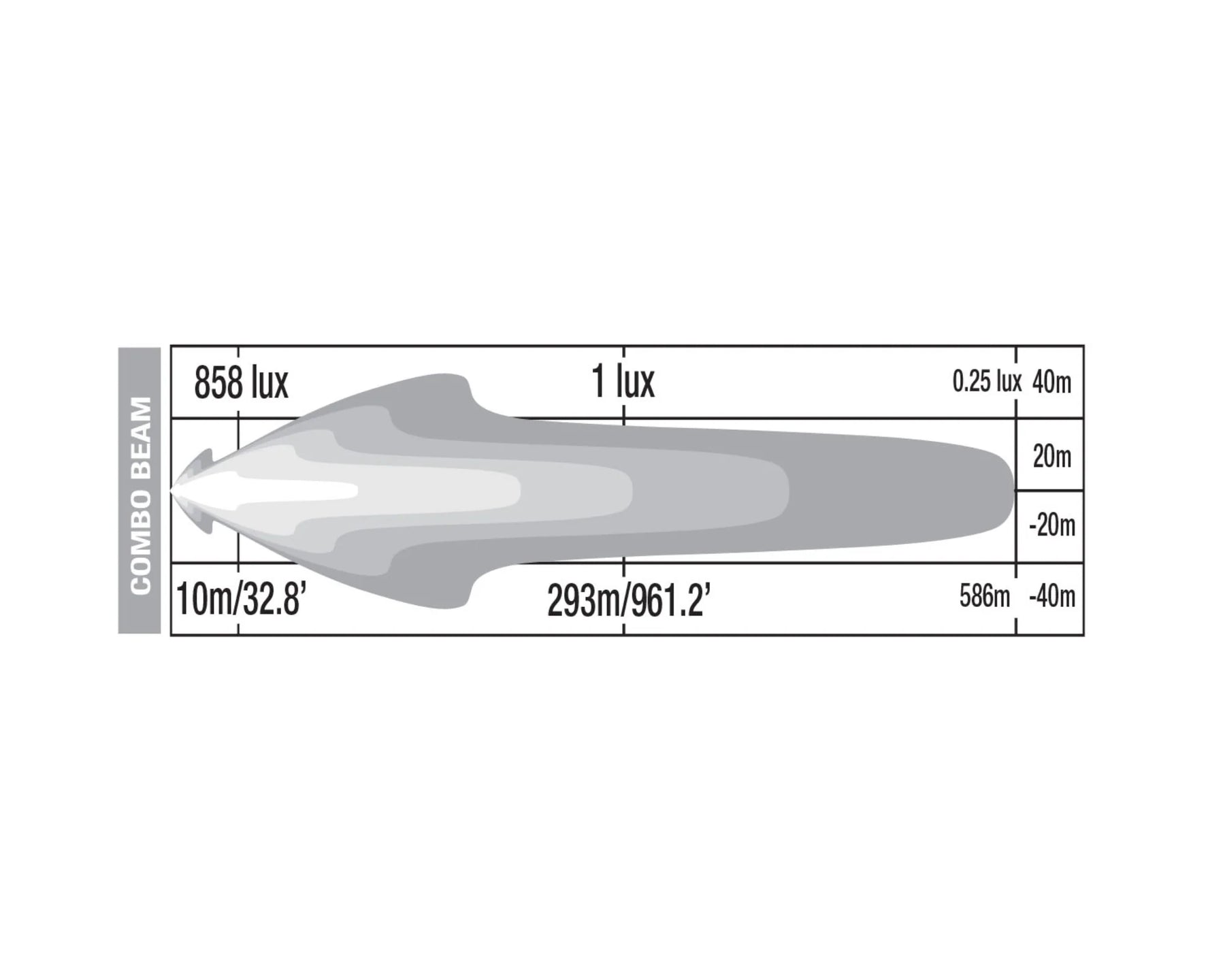 Total Internal Reflection (TIR): TIR optic lenses run through the center of the driving light, capturing 100% of the LEDs' output, ensuring optimal lighting efficiency and projection for an exceptional driving experience. Spot lenses focus the light directly ahead, while Combo lenses spread the light horizontally for broader coverage.